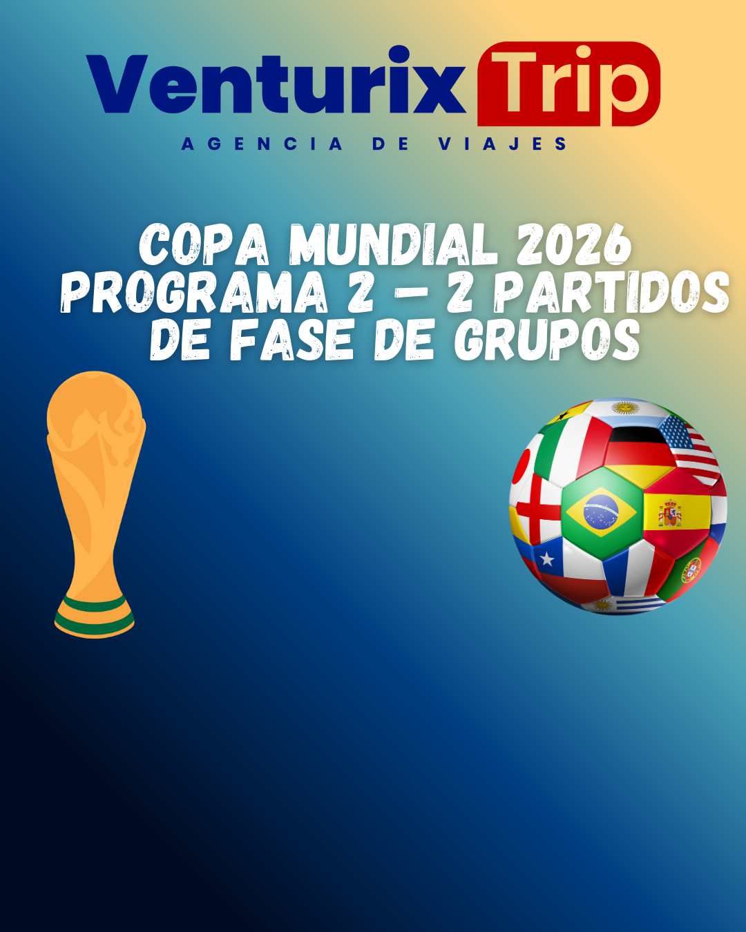⚽ Copa Mundial 2026 — PROGRAMA 2: 2 Partidos Fase de Grupos | 9 Días / 8 Noches